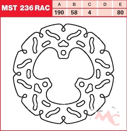 Specifikace brzdového kotouče:- označení kotouče: MST 236 RAC