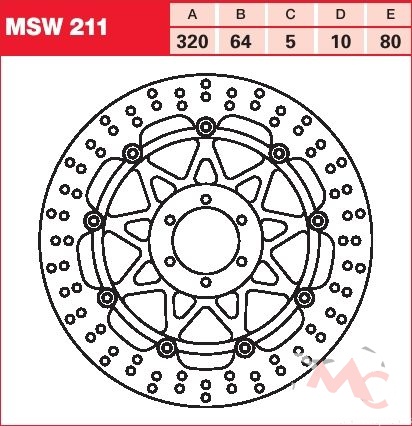 Specifikace brzdového kotouče:- označení kotouče: MSW 211