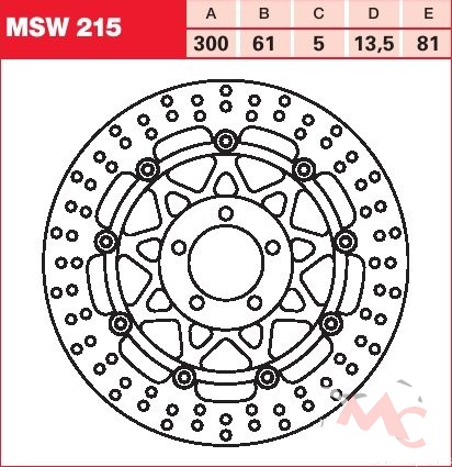 Specifikace brzdového kotouče:- označení kotouče: MSW 215