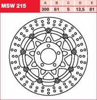 Specifikace brzdového kotouče:- označení kotouče: MSW 215