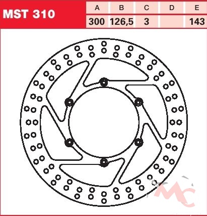 - rozteč šroubů kotouče: údaj E v tabulce v obrázku (v mm)