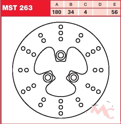 • rozteč šroubů kotouče: údaj E v tabulce v obrázku (v mm)