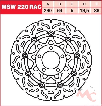 Specifikace brzdového kotouče:- označení kotouče: MSW 220 RAC