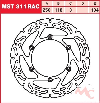 Specifikace brzdového kotouče:- označení kotouče: MST 311 RAC