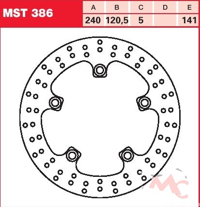 Specifikace brzdového kotouče:- označení kotouče: MST 386