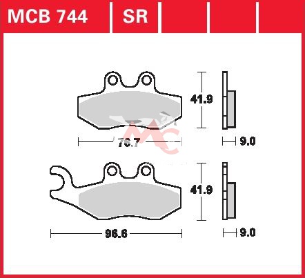 Specifikace brzdových destiček:- označení destiček a směsi: MCB 744