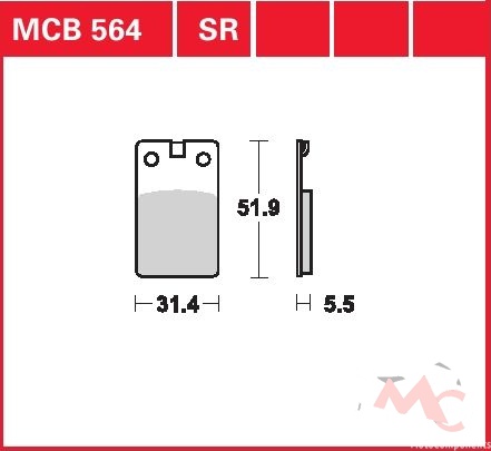 Specifikace brzdových destiček:- označení destiček a směsi: MCB 564 SR