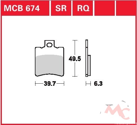 Specifikace brzdových destiček:- označení destiček a směsi: MCB 674 RQ
