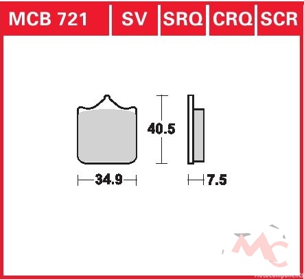 Specifikace brzdových destiček:- označení destiček a směsi: MCB 721 SV
