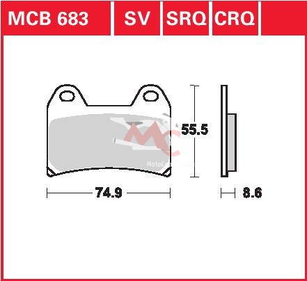 Specifikace brzdových destiček:- označení destiček a směsi: MCB 683