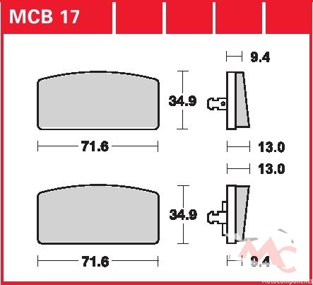 Specifikace brzdových destiček:- označení destiček a směsi: MCB 17