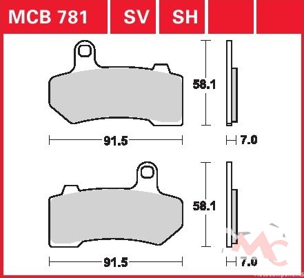 Specifikace brzdových destiček:- označení destiček a směsi: MCB 781 SV
