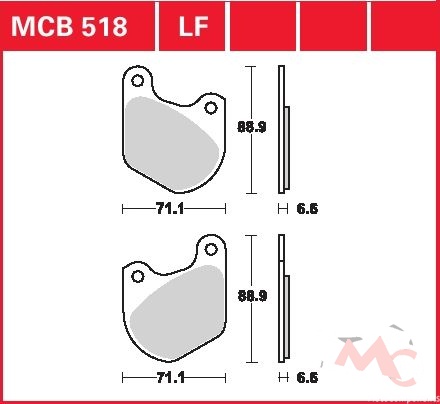 Specifikace brzdových destiček:- označení destiček a směsi: MCB 518