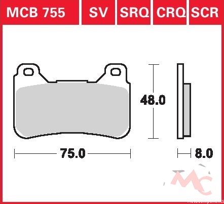 Specifikace brzdových destiček:- označení destiček a směsi: MCB 755 CRQ