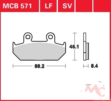 Specifikace brzdových destiček:- označení destiček a směsi: MCB 571