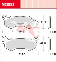 Specifikace brzdových destiček:- označení destiček a směsi: MCB 833
