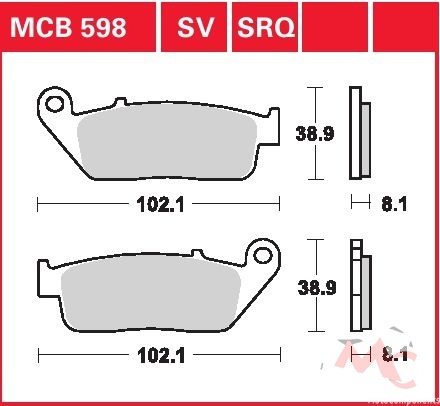 Specifikace brzdových destiček:- označení destiček a směsi: MCB 598 SV