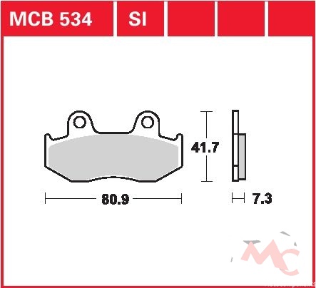 Specifikace brzdových destiček:- označení destiček a směsi: MCB 534 SI