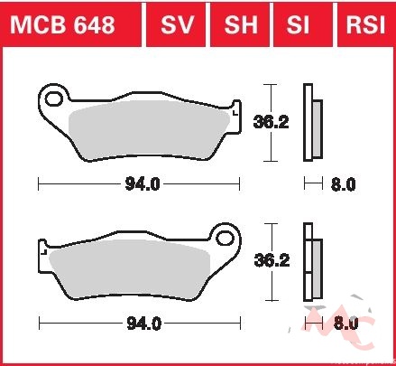 Specifikace brzdových destiček:- označení destiček a směsi: MCB 648 SV