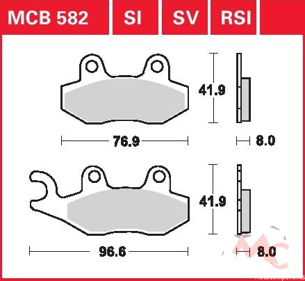 Specifikace brzdových destiček:- označení destiček a směsi: MCB 582 SI