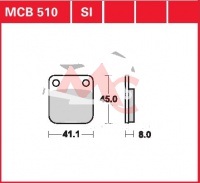 Specifikace brzdových destiček:- označení destiček a směsi: MCB 510 SI