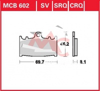 Specifikace brzdových destiček:- označení destiček a směsi: MCB 602 SV