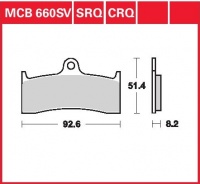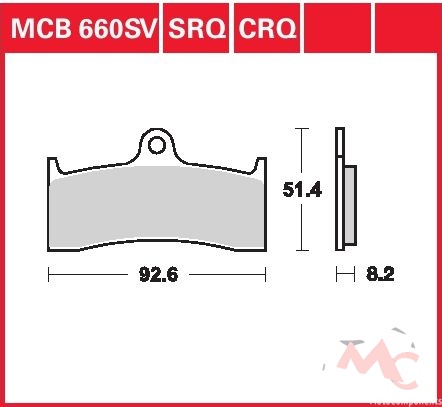 Specifikace brzdových destiček:- označení destiček a směsi: MCB 660 SV