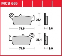 Specifikace brzdových destiček:- označení destiček a směsi: MCB 665