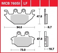 Specifikace brzdových destiček:- označení destiček a směsi: MCB 760 SI