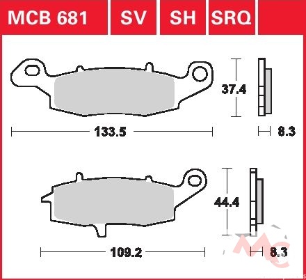 Specifikace brzdových destiček:- označení destiček a směsi: MCB 681 SRQ