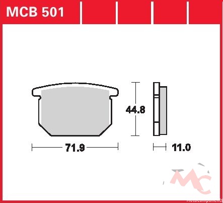 Specifikace brzdových destiček:- označení destiček a směsi: MCB 501