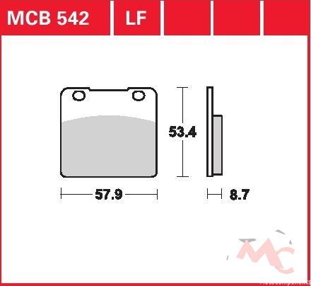 Specifikace brzdových destiček:- označení destiček a směsi: MCB 542