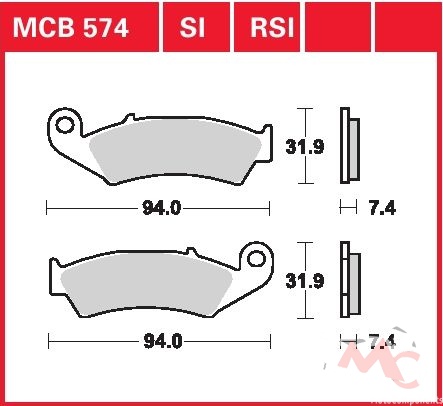 Specifikace brzdových destiček:- označení destiček a směsi: MCB 574 RSI