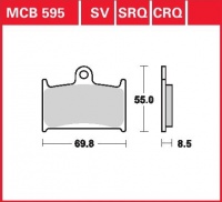 Specifikace brzdových destiček:- označení destiček a směsi: MCB 595
