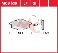 Specifikace brzdových destiček:- označení destiček a směsi: MCB 539 EC