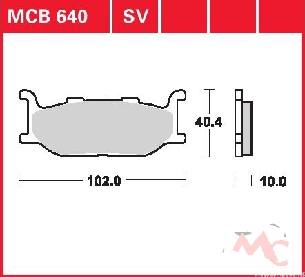 Specifikace brzdových destiček:- označení destiček a směsi: MCB 640