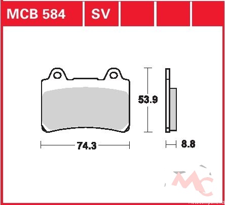 Specifikace brzdových destiček:- označení destiček a směsi: MCB 584 SV