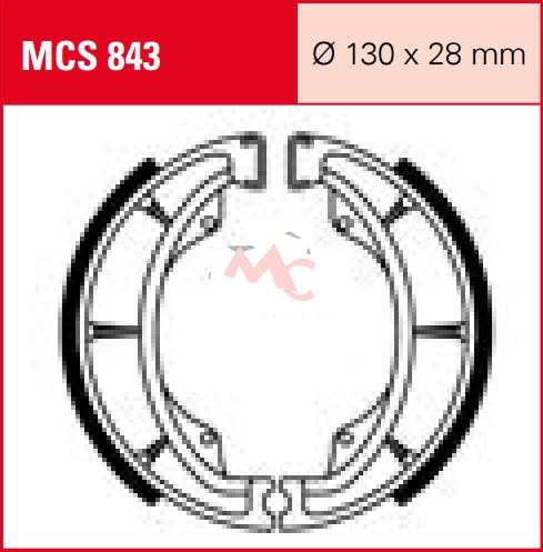 Specifikace brzdových čelistí:- označení brzdových čelistí: MCS 843