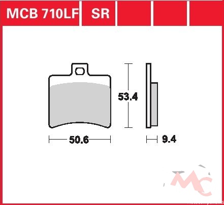 Specifikace brzdových destiček:- označení destiček a směsi: MCB 710