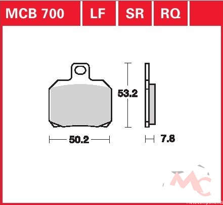 Specifikace brzdových destiček:- označení destiček a směsi: MCB 700