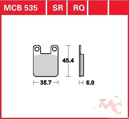 Specifikace brzdových destiček:- označení destiček a směsi: MCB 535 SR
