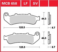 Specifikace brzdových destiček:- označení destiček a směsi: MCB 658