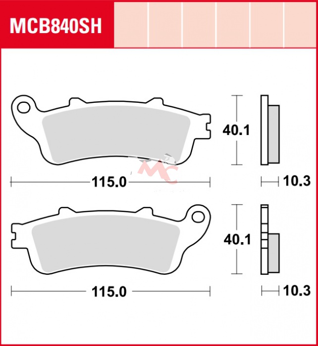 Specifikace brzdových destiček:- označení destiček a směsi: MCB 840 SH