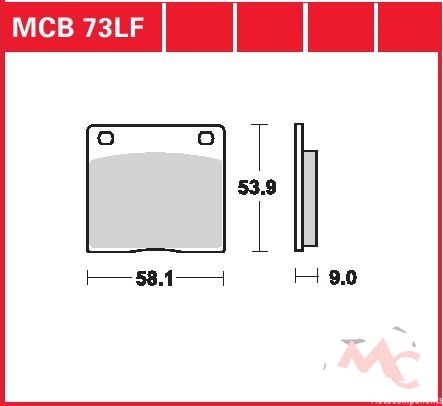 Specifikace brzdových destiček:- označení destiček a směsi: MCB 73