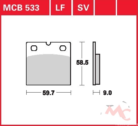 Specifikace brzdových destiček:- označení destiček a směsi: MCB 533