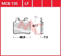 Specifikace brzdových destiček:- označení destiček a směsi: MCB 735 EC