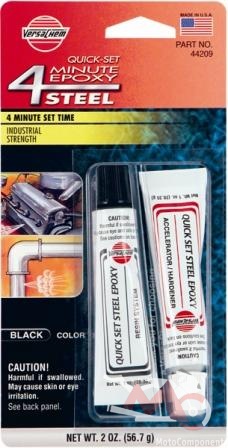 VERSACHEM 4 Minute Steel je rychleschnoucí epoxy na ocel a kovy. Dvousložkový přípravek na velmi pevné opravy kovových dílů, odštípnuté kusy, praskliny. Použitelný také na materiály jako sklo, beton a dřevo. Epoxy tuhne do kovové tvrdosti a spoj či výplň lze opracovávat jako kov (tzn. brousit, vrtat, natírat atd.). VERSACHEM 4 Minute Steel odolává vlhkosti, působení chemikálií a vibracím.